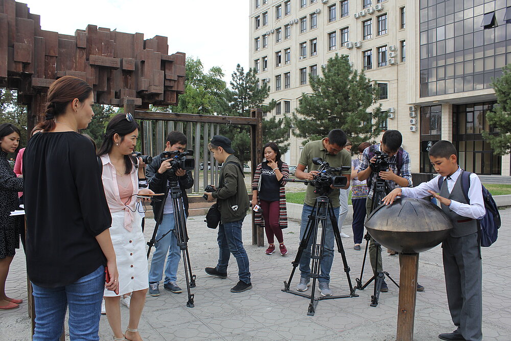During the demonstration of the art objects journalists interviewed authors and project coordinators. Media representatives took part in the opening ceremony of a new sculptural composition based on the cartoon of cult director Hayao Miyazaki "Spirited Away". "Purify Bishkek" sculptural composition was made of recycled materials, and symbolizes the environmental problems of the city.