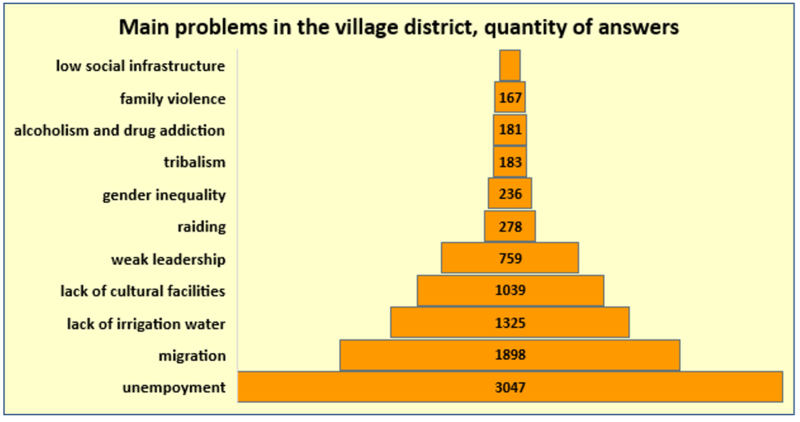 Among the issues that exist in the study area (Fig. 3), the largest number of answers relates to unemployment (82%). This may be due to the fact that during the pandemic Covid-19, many people who were outside the country in search of jobs had to return to their homeland, and at the time of the survey, only a small part of the returning citizens were able to go back to their jobs.