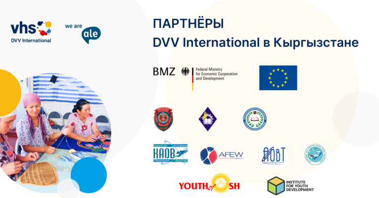 Среди партнёров DVV International в Кыргызстане - государственные, негосударственные, а также международные организации. Государственными партнёрами являются Государственная служба исполнения наказания (ГСИН), Агентство начального и профессионального образования и Институт повышения квалификации и переподготовки кадров им. М.Р. Рахимовой КГУ им. И. Арабаева.