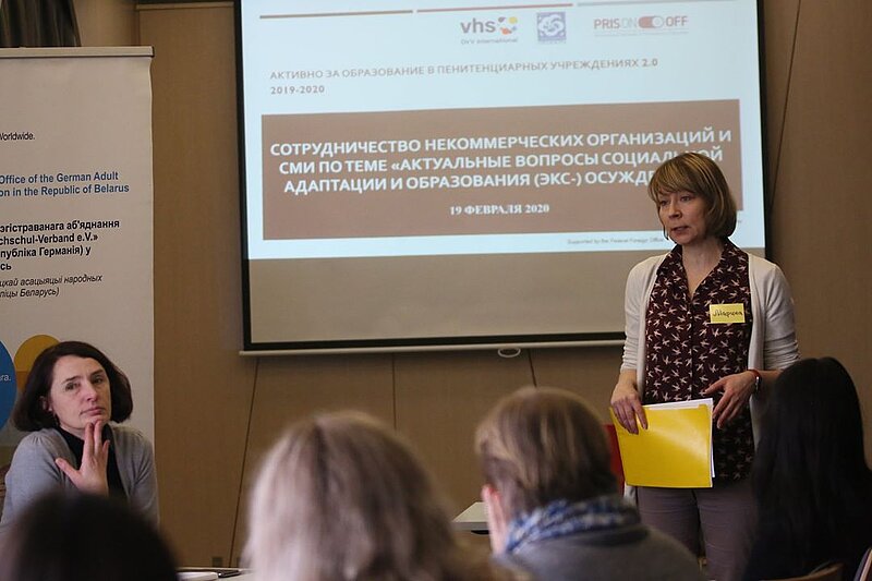 Марина: DVV эту тему начали поддерживать еще в 2010 году, тогда это были локальные мини-проекты, реализуемые нашим партнером ГООО «Социальные проекты» в Гомельской области. С 2010 по 2013 опыт этих маленьких проектов показал, что тема важная и актуальная, и что мало кто ей занимается. И тогда родилась идея проекта «Образование открывает двери», который бы смог посмотреть на проблему образования осужденных с разных сторон.