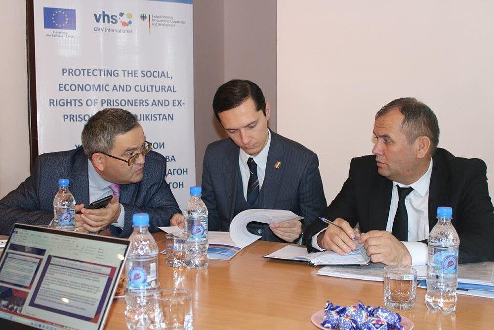 Стоит отметить, начиная с 2014 года Представительство DVV International в Таджикистане в сотрудничестве с партнерами по развитию и государственными структурами, такими как ГУИУН Министерства юстиции Республики Таджикистан, общественными организациями «Джахон» и «Бюро по правам человека и соблюдение законности» работает по направлению защиты прав осужденных и бывших осужденных. Данное мероприятие проводилось в рамках проекта «Защита социальных, экономических и культурных прав осужденных и бывших осужденных в Таджикистане» при финансовой поддержке Европейского Союза и Федерального министерства экономического сотрудничества и развития Германии.