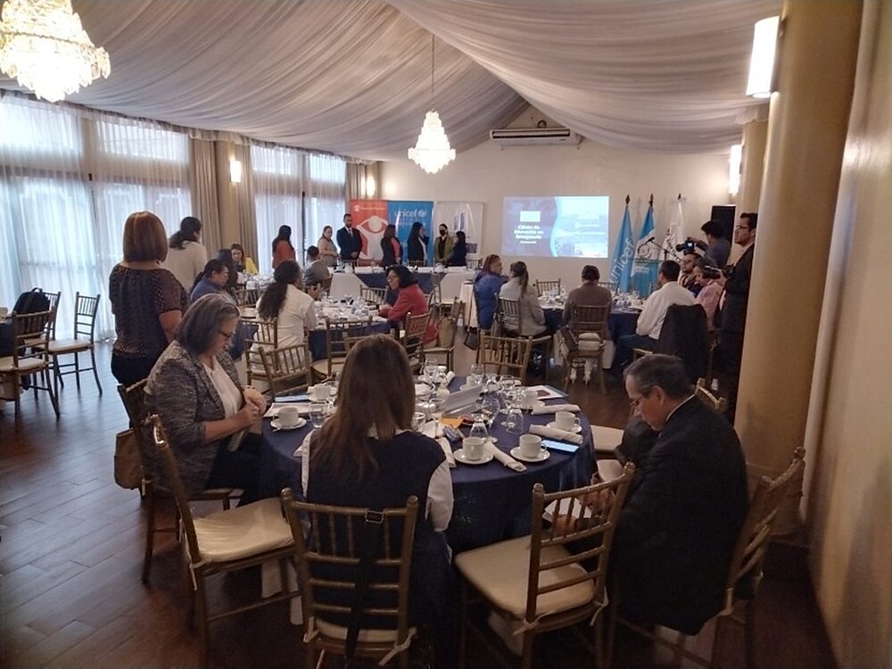 En la reunión, coordinada por las organizaciones: UNICEF y Save the Children, participó la señora ministra de Educación, magister Claudia Ruiz Casasola de Estrada, así como las viceministras de su ministerio e integrantes de distintas dependencias. El tema abordado se refirió a situaciones de riesgo escolar y a acciones de apoyo que pueden llevarse a cabo para atender dichas situaciones de emergencia y disminuir los riesgos. Se hizo referencia a la importancia de contar con un plan de riesgo en cada establecimiento, que permita organizar a la comunidad educativa para dar respuesta efectivas y eficientes.