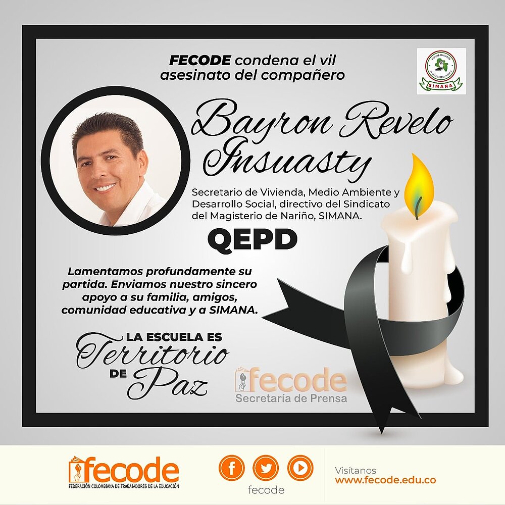 Con Douglas, también sufrió el docente Bayron Revelo Insuasty, quien era líder sindical, miembro de Fecode, lo acribillaron en Tumaco luego de permanecer varios días retenido junto a otro directivo del Sindicato del Magisterio de Nariño SINAMA, del que él también hacía parte.