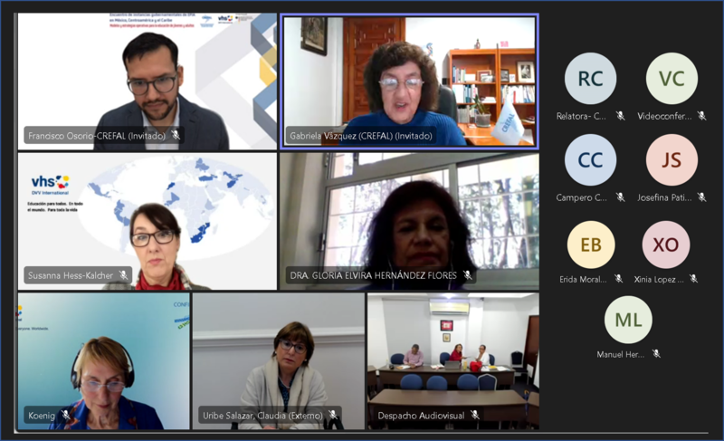 En el último año de trabajo la Dirección de DVV International en la región de Centroamérica, México y El Caribe, ha estrechado vínculos con los actores sociales y políticos más importantes de la EPJA, y uno de ellos es el Centro de Cooperación Regional para la Educación de Adultos en América Latina y El Caribe (CREFAL), organismo autónomo especializado en la formación de asesores, la investigación, la sistematización, etc., con el cual, en pasados días llevamos a cabo, de manera virtual, el ‘Primer Encuentro de Instancias Gubernamentales de EPJA en México, Centroamérica y El Caribe: Modelos y Estrategias Operativas para la Educación de Jóvenes y Adultos ’.