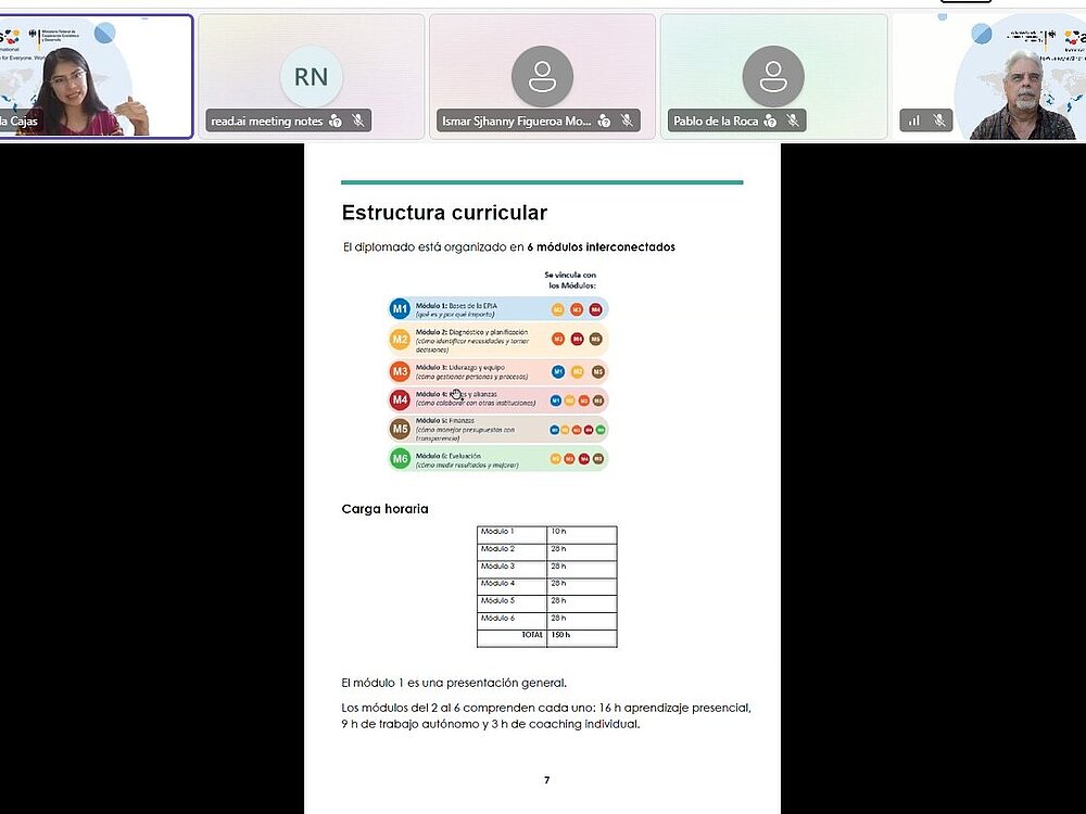 En el ámbito digital, se acordó fortalecer la red de exalumnos del diplomado para fomentar el intercambio de conocimientos especializados. Asimismo, se avanza en la reestructuración de la Biblioteca Virtual en EPJA. La nueva plataforma incorporará un chatbot o asistente virtual para apoyar la investigación académica y se planea su lanzamiento oficial con autoridades del sector educativo.