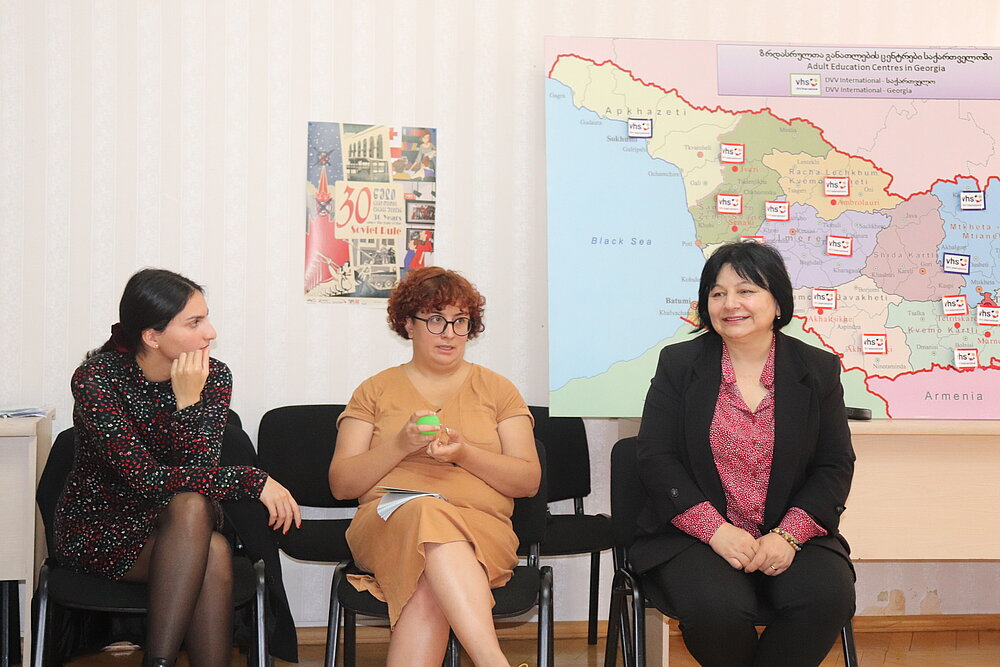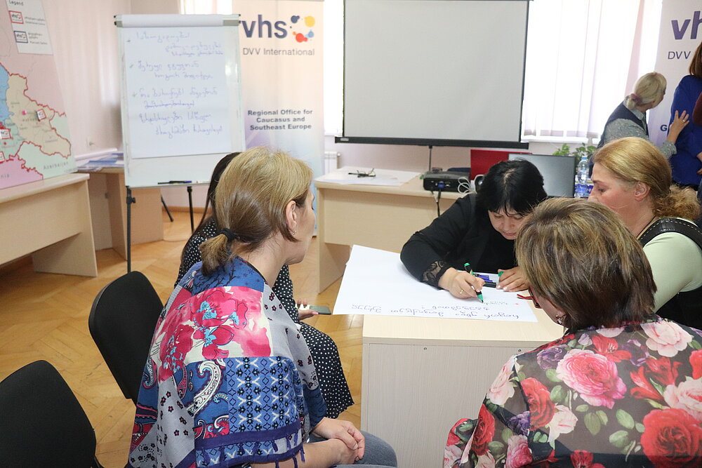 The fourth module of the four-day Curriculum globALE training programme on the topic “Methods of the Adult Learning and Education” organised by the DVV International Georgia Country office, was held in Tbilisi. The aim of the module was: to introduce adult learning methods; analyse methods about adult learning theories; understand the criteria for using methods depending on the situation; practice the techniques and, of course, recall the modules learned and make connections between them. The visiting doctor led the programme in the field of psychology, trainer/consultant in social skills, Ms. Thea Gvelesiani.