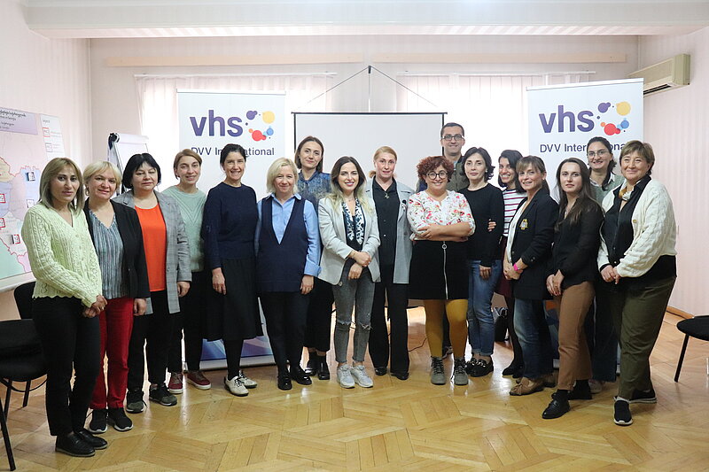 As usual, at the end of the training, the directors of Adult Learning and Education (ALE) centers participating in the training programme, adult education coordinators of state vocational colleges, employees of the Georgian Adult Education Network (GAEN) and DVV International Georgia Country office were given a certificate of participation for the fourth module.
