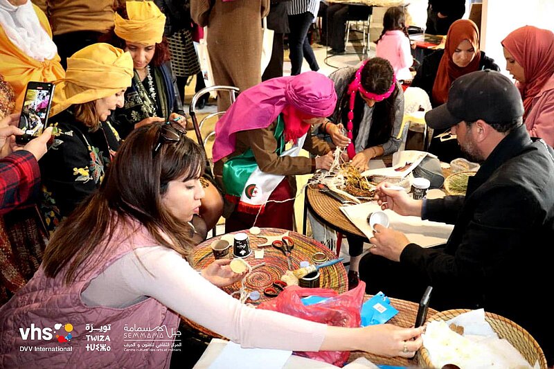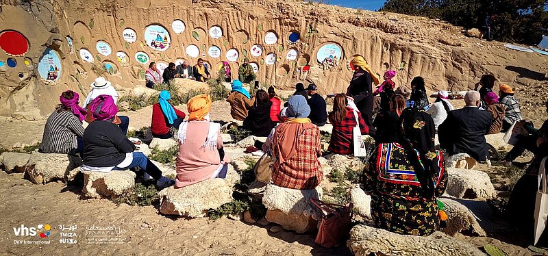 „Twiza“ “ (auf Amazigh „Tiwizi“) bedeutet „Zusammenarbeit“. So nannten DVV International und das Kulturzentrum Jebel Semmama eine gemeinsame dreitägige Veranstaltung im März 2023. Geboten wurden Workshops, gemeinsame Reflexion, Shows und Austausch. Den Auftakt machte die „El Mahfel“-Parade im Takt von Bergrhythmen und mit Sträußen aus Rosmarin und weißem Wermut.