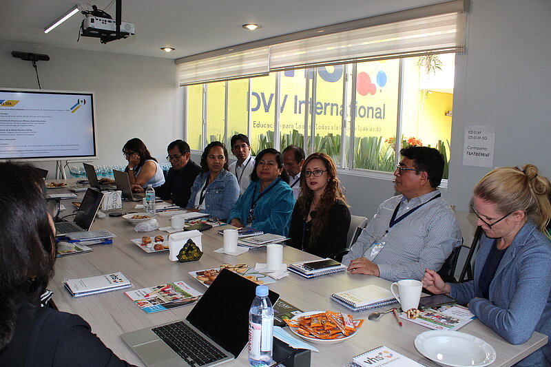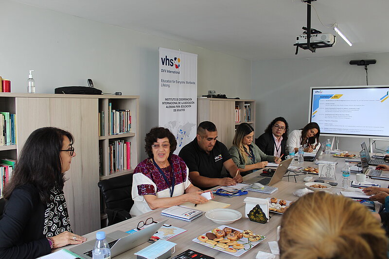 A la delegación de la Región Andina de la DVV International se sumaron representantes del Ministerio Educación de Ecuador, del Ministerio Educación de Perú, del Ministerio de Educación de Colombia, de la Asociación Los Andes, de la Universidad Nacional Amazónica de Madre de Dios, de la Universidad Nacional de Educación Enrique Guzmán y Valle y de Centro de Cooperación Regional para la Educación de Adultos en América Latina y El Caribe (CREFAL).