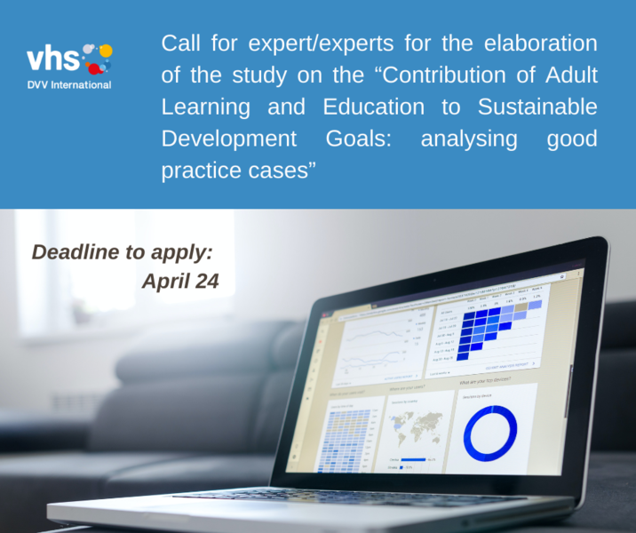 DVV International is looking for an expert or team of experts to elaborate the study on the “Contribution of Adult Learning and Education to Sustainable Development Goals: analysing good practice cases” in Armenia, Bosnia and Herzegovina, Georgia, Kosovo, Moldova, and Ukraine. The objective of the study is to provide evidence on the role and contributions of good examples of adult learning and education (ALE) for reaching the Sustainable Development Goals and how ALE makes a difference in the lives of community members in the mentioned countries. Deadline to apply is April 24. Read the detailed Terms of Reference by the following link.
