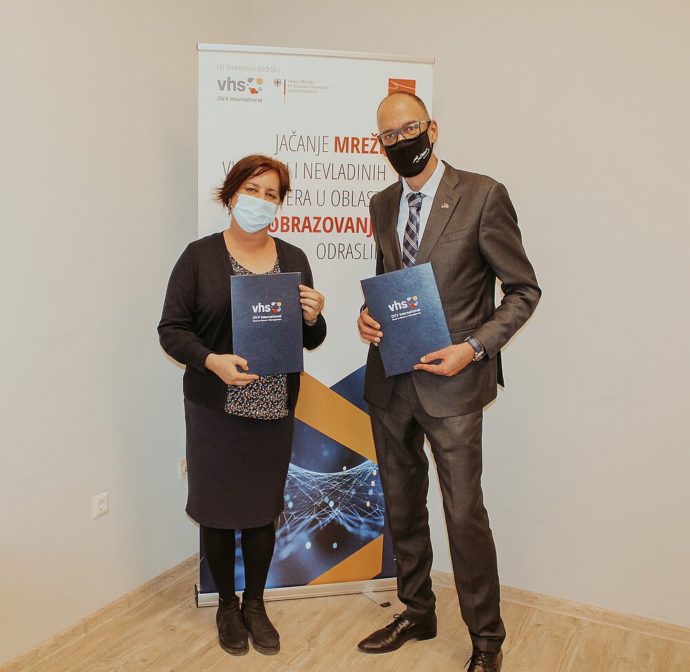 Executive Director of the Association for Local Development Initiatives ALDI, Ms Meliha Gačanin and the Director of the DVV International – Country Office Bosnia and Herzegovina, Mr Emir Avdagić, PhD, signed the Agreement on Cooperation in 2021 yesterday in Goražde.