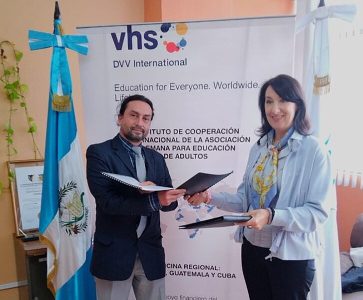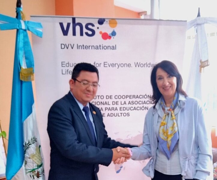 Con el objetivo de articular esfuerzos con el Comité Nacional de Alfabetización de Guatemala (CONALFA), y fortalecer el ejercicio del derecho a la educación continua a lo largo vida, Susanna Hess-Kalcher, Directora Regional de DVV International para Centroamérica, México y El Caribe, y el licenciado Otto Rubén Barrera Hernández, Secretario Ejecutivo de CONALFA, firmaron el Convenio de Cooperación específico para 2023.