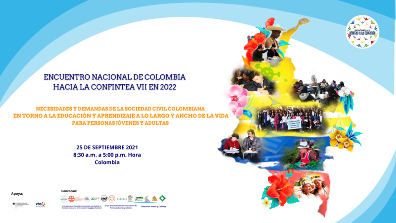 El Encuentro Nacional De Colombia Hacia La CONFINTEA VII En 2022: necesidades y demandas de la sociedad civil colombiana en torno a la educación y aprendizaje a lo largo y ancho de la vida para personas jóvenes y adultas, EPJA será un momento de escucha activa y proposición desde sus participantes para contribuir a las propuestas de la próxima Conferencia Internacional de Adultos (CONFINTEA).