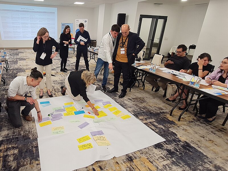 The workshop began with the discussion of the struggles when drafting the national advocacy plans and sharing general experiences of the work process. Afterwards, the representatives of civil society organisations (associations, networks and platforms) and DVV International representatives from six partner countries of the project presented their national advocacy plans (NAP) developed during 2023. The trainer team provided feedback on the NAP’s presented by each country. In addition, the active involvement of the participants in the process of commenting and evaluating the documents was valuable. The takeaways from the presentations were emphasised by reflecting in mixed groups composed of partners from different countries.