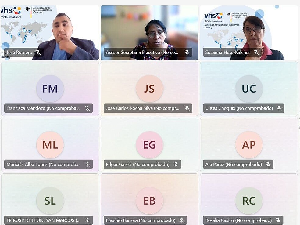 Con el propósito de compartir experiencias y metodologías innovadoras en materia de educación para jóvenes y adultos, se llevó a cabo un intercambio virtual entre el Instituto Nacional para la Educación de los Adultos (INEA) de México y el Comité Nacional de Alfabetización (CONALFA) de Guatemala, con la facilitación y participación de DVV Internacional tanto de México como de Guatemala.