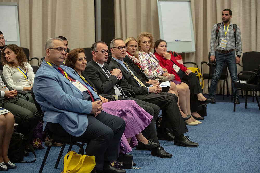 To summarise and analyse activities by DVV International in the region, the International Conference "Adult Learning and Education in the South Caucasus: the milestones" was conducted on 28-29 September 2022. The DVV International Georgia office organised the Conference with DVV International Armenia and the Georgian Adult Education Network. The Conference brought together ALE experts, policy, decision-makers, and practitioners who agree that Adult Education has to be recognised as a public good. The administrative and financial authority should be strengthened to allow for greater flexibility and freedom in contributing to adult skills development. The conference participants discussed and made recommendations on how to foster reforms and build a sustainable adult education system in Armenia and Georgia based on the best European practices, including implementing targeted holistic AE activities. The Conference enacted a professional debate among stakeholders and facilitated exchange on the situation in the ALE sector worldwide and its possible influences on national opportunities in the South Caucasus. More than 80 ALE experts, policy and decision-makers, and practitioners from Armenia, Bosnia and Herzegovina, Georgia, Germany, Kyrgyzstan, Moldova, Tajikistan, and Ukraine were invited to participate.
