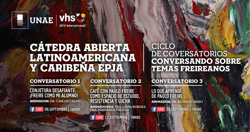 La Universidad Nacional de Educación (UNAE) y DVV International realizan la cordial invitación a participar en el mes de septiembre de 2021, del ciclo de conversatorios: Cátedra Abierta EPJA conversando sobre temas Freirianos, organizado en homenaje al centenario del gran educador Paulo Freire.