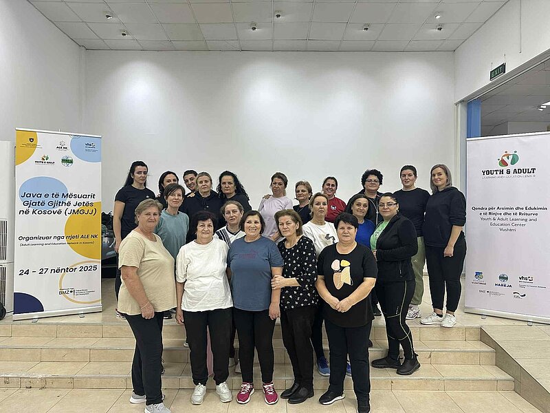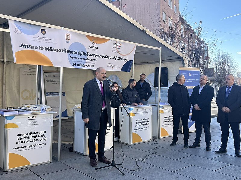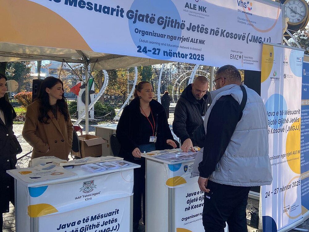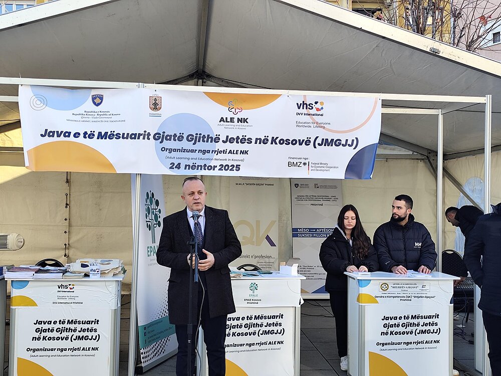 From November 24 to 27, 2025, Lifelong Learning Week (LLL - Week) was successfully held in several municipalities across Kosovo. Organized by the Adult Education Network – ALE NK, in cooperation and with the support of DVV International in Kosovo, the week brought together central and local institutions, civil society organizations, training providers, and citizens from various municipalities, promoting a culture of learning as a continuous lifelong process. Over the course of four days, more than 40 institutions and organizations from all over Kosovo presented educational programs for citizens of all ages.