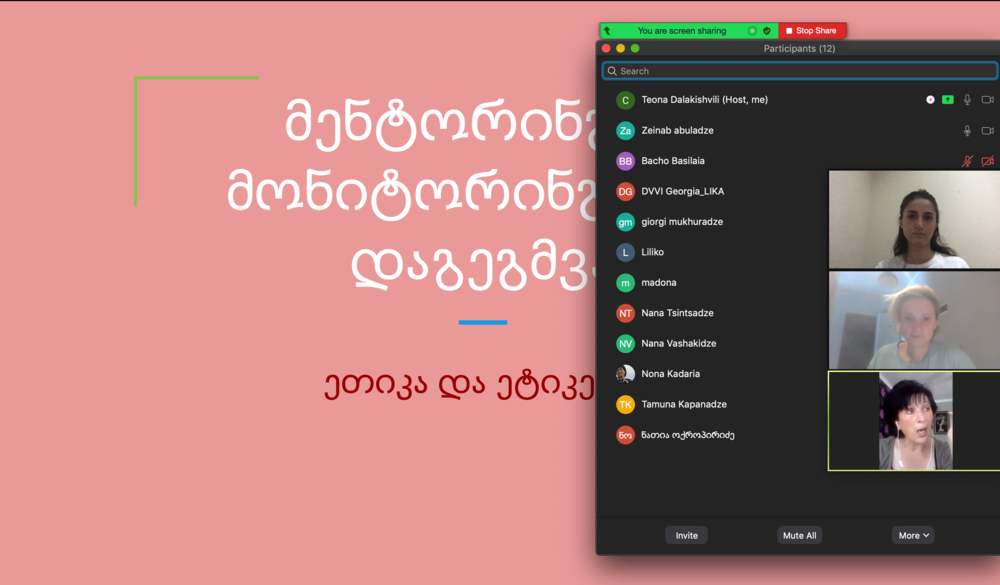 The topic of the following online training "Social Mentoring," was entirely new for most training participants. They were particularly interested and enthusiastic about the training, which was led by the young but experienced instructor of Mentor Hub, Teona Dalakishvili. She was assisted by the psychologist Nana Vashakidze. The main goal of the training was to introduce systemic mentoring programs, which should lead to positive societal changes. From the first lessons, it became clear to the participants that this training would be essential for their relationships with the beneficiaries and other business or personal connections in general.