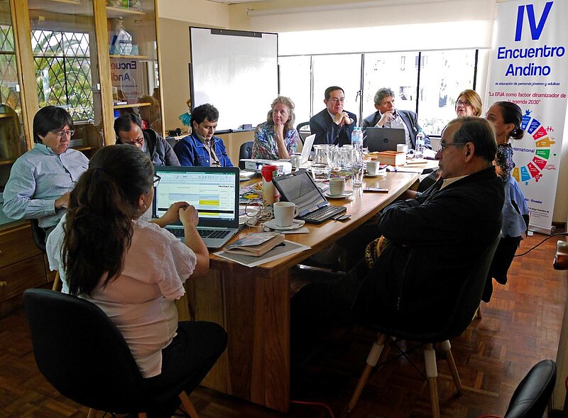 Esta mañana, en las instalaciones de la Oficina Regional Andina de DVV International con la presencia de autoridades de la Universidad Nacional de Educación (UNAE), Ministerio de Educación, Funder, el Subsistema de Educación Fiscomisional Semipresencial del Ecuador “Monseñor Leonidas Proaño” (SEFSE) y la Organización de los Estados Iberoamericanos (OEI), se realizó una reunión con el objetivo de aprobar el programa de la maestría de Educación para Jóvenes y Adultos que ofertará próximamente la UNAE.