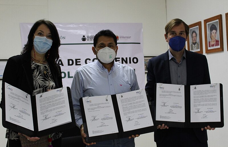 Durante el evento de firma de convenio, los directivos de ambas instituciones: Gustavo Gómez Ordóñez, Director General del ICHEJA, Chistoph Jost, Director General de DVV International y Susanna Hess-Kalcher, Directora Regional para Centroamérica, México y El Caribe, acordaron favorecer la educación de los sectores vulnerables de la entidad.