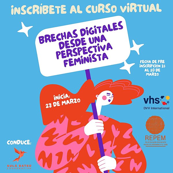 La Red de Educación Popular entre mujeres de América Latina y El Caribe (REPEM) y Sulá Batsú convocan al curso virtual: Brechas Digitales desde una perspectiva Feminista. Las inscripciones se pueden realizar hasta el 20 de marzo, a través de este enlace.