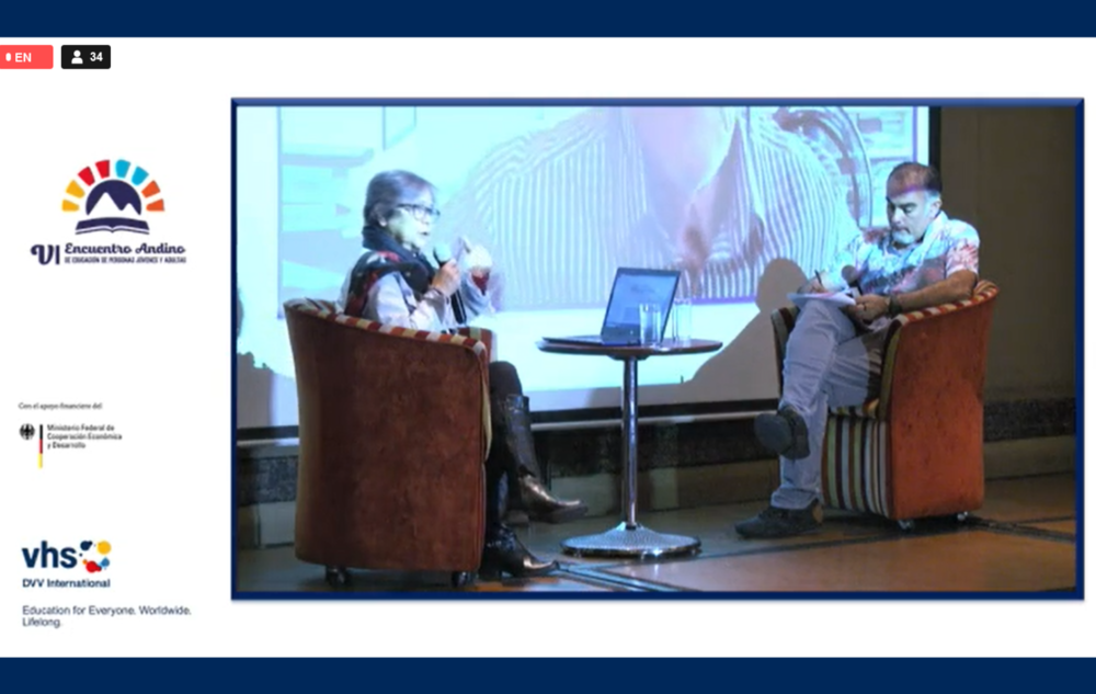 Después de la inauguración, se realizó el Conversatorio “De Belém a Marrakech: Logros, Pendientes y Nuevas Prioridades”. En donde participaron Nelsy Lizarazo, Coordinadora General de la Campaña Latinoamericana por el Derecho a la Educación (CLADE) y Timothy Ireland, Vicepresidente del Consejo Internacional de Educación para Personas Adultas (ICAE) y moderó Mauricio Velasco, Coordinador del Proyecto Regional de la DVV International. Los dos conferencistas resaltaron la participión de la sociedad civil en la VII CONFINTEA, especialmente de las organizaciones sociales de Latinoamérica y El Caribe, agrupadas en la Plataforma EPJA que logró llegar a consensos y demandas que fueron escuchadas y acogidas en el Marco de Acción de Marrakech. Mauricio Velasco resaltó la necesidad de concebir la EPJA no como una actividad compensatoria, sino a través del enfoque de aprendizaje a lo largo de la vida, como un derecho para todos y todas. Además, gracias a la participación del público, se reparó en la necesidad de establecer mecanismos claros que contemplen el financimiento para asentar el Marco de Acción de Marrakech, y el rol de la sociedad en la incidencia. Así también, se puso en valor las herramientas de identificación y mapeo de actores y aliados; y la generación de propuestas para el desarrollo nacional a través de la EPJA, con base en datos obtenidos con investigación.