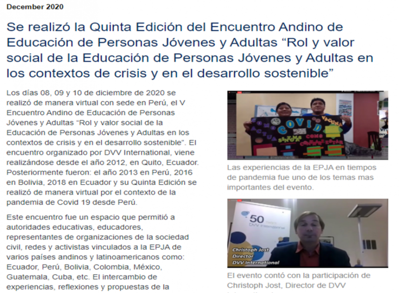 Se realizó la Quinta Edición del Encuentro Andino de Educación de Personas Jóvenes y Adultas “Rol y valor social de la Educación de Personas Jóvenes y Adultas en los contextos de crisis y en el desarrollo sostenible”