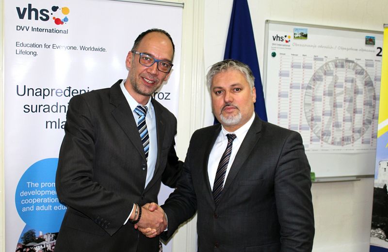 As a result of very successful cooperation so far in the field of adult education, the director of DVV International - Country Office, Mr Dr.sc. Emir Avdagić held a meeting with the Minister of Education, Youth, Science, Culture and Sport of Bosnia-Podrinje Canton Goražde, Mr Damir Žuga in which they discussed needs and potential joint activities in this field in the future.
