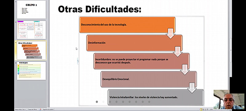 Los talleres se desarrollarán hasta el 26 de noviembre (3 días cada semana, 4 grupos diferentes de docentes). Quienes participan son docentes EPJA que para el cierre de la jornada el 27 de noviembre tratarán el tema de la “Conformación de la Red de Docentes para el fortalecimiento de la EPJA en Ecuador”