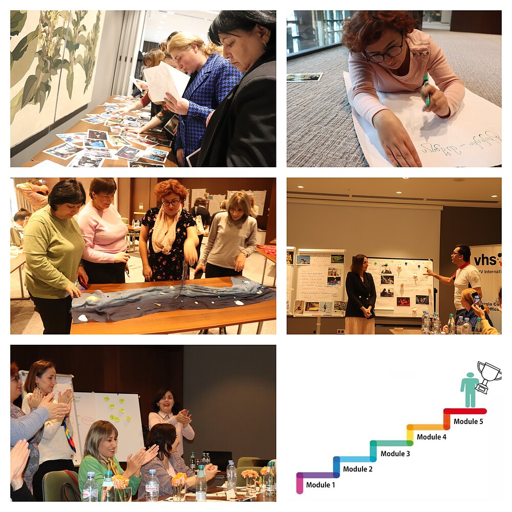 The main goal of this module was to collect knowledge, detail it and convey it with a practical purpose. Upon completion of the training, the directors of ALE centers, adult education coordinators of state vocational colleges, the Georgian Adult Education Network (GAEN) employees, and the DVV International Georgia Country office participating in the training programme, received a certificate of participation in the fifth module.