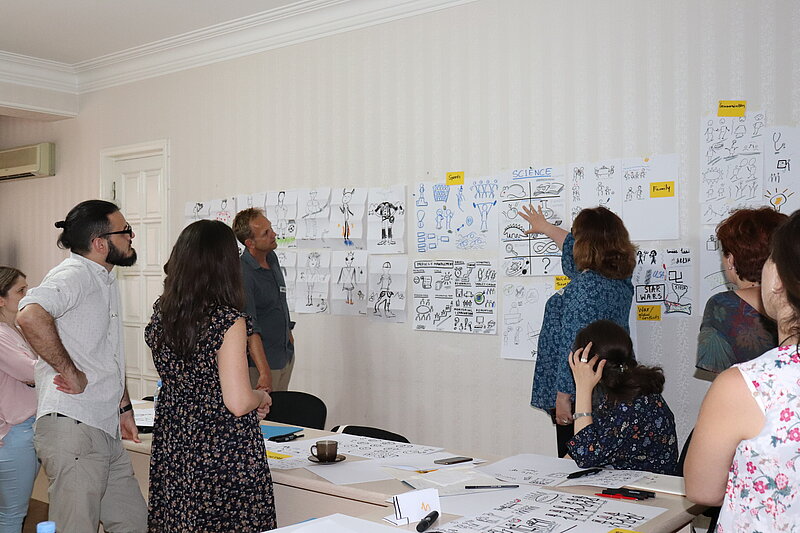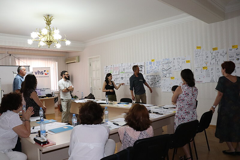 On July 11-14, 2018, a four-day training on visual communication and graphic facilitation is being held at DVV International Georgia Country Office and conducted by Christian Ridder, trainer of the German organisation “Business as Visual” and attended by 16 Georgian youngsters from Tbilisi and the regions.