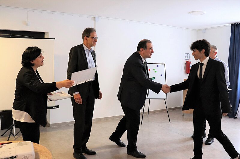 Later a certificate awarding ceremony was held. The H.E. German Ambassador to Georgia, Hubert Knirsch, and Minister of the Education and Science of Georgia, Mr. Mikheil Chkhenkeli, awarded the several courses graduates and wished them success in their future endeavors.