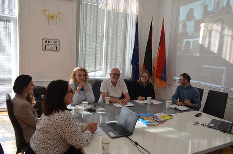 On October 4-6, representatives of DVV International’s headquarter and regional office were in Armenia for a three-day visit. Uwe Gartenschlaeger (Deputy Director of DVV International), Bettina Brand (Senior Desk-Officer for East and Southeast Europe, Caucasus) and Maja Avramovska (Director for Regional Office for South Eastern Europe, Caucasus and Turkey) started their program at DVV International Armenia’s Country Office where the local team presented the results and achievements of the 2019-2021 program phase.