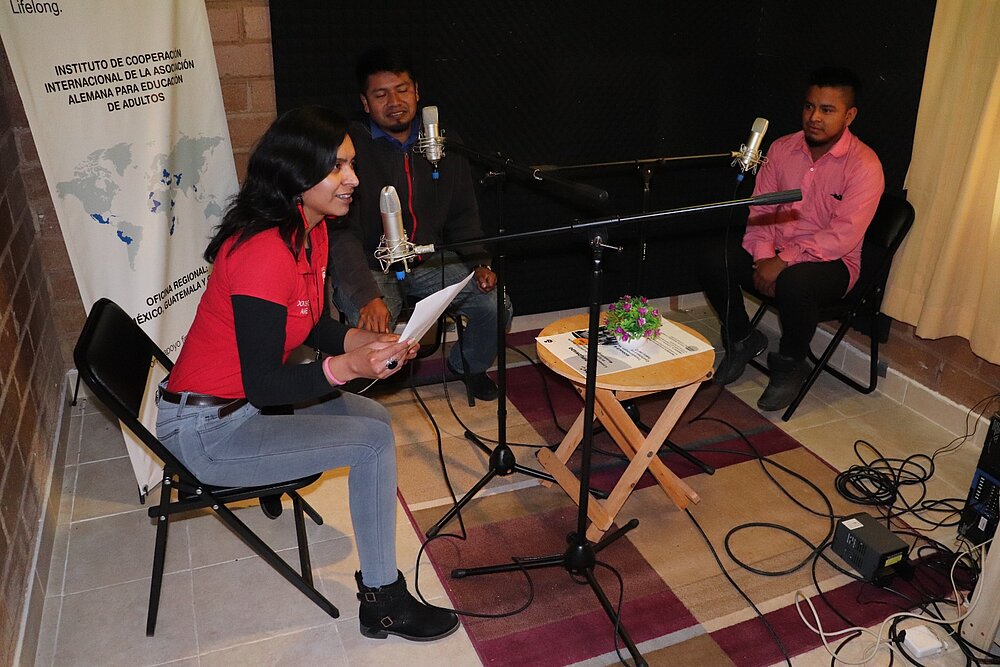 Hace unos días, alumnos y alumnas de séptimo semestre, de la Licenciatura en Autogestión Sustentable del Territorio en la Universidad Moxviquil, visitaron la cabina de Radio EPJA, y recibieron un taller sobre uso y manejo de equipo técnico para hacer radio. Además, tuvieron la oportunidad de intercambiar experiencias con el equipo de trabajo CEDECA-La Albarrada y grabaron algunas cápsulas radiales.