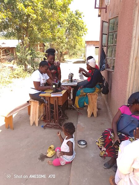Mashalubu making clothes at her village in Malawi.