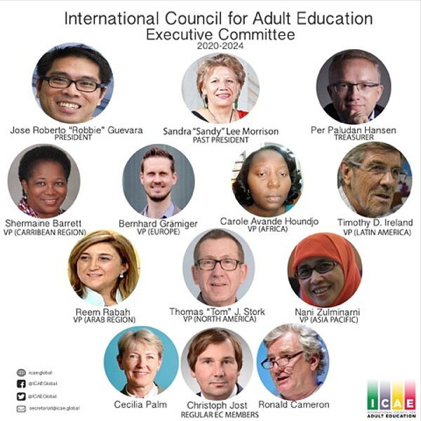 Die Generalversammlung des Internationalen Rates für Erwachsenenbildung (ICAE) hat im April seinen neuen Exekutivausschuss gewählt. Der neue ICAE-Präsident ist Jose Roberto "Robbie" Guevara. Christoph Jost, Direktor von DVV International, wurde zum ordentlichen Mitglied des Exekutivausschusses gewählt.