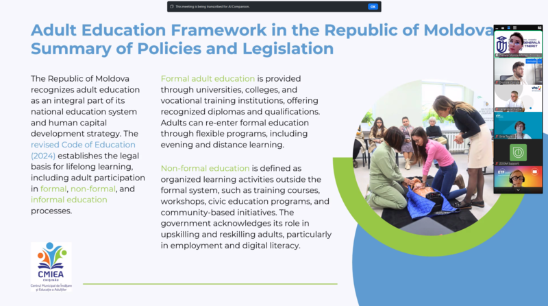 On 9 July 2025, DVV International Moldova, in partnership with the European Training Foundation (ETF), organised a webinar titled “Adult Learning Progress and Development in Candidate and Neighbouring Countries: A Governance Perspective.”