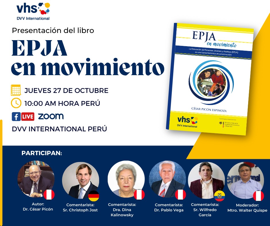 El jueves 27 de octubre DVV International Perú presentará el libro “EPJA en movimiento”, la última obra del Dr. César Picón. En la presentación participarán el Sr. Christoph Jost director de DVV…