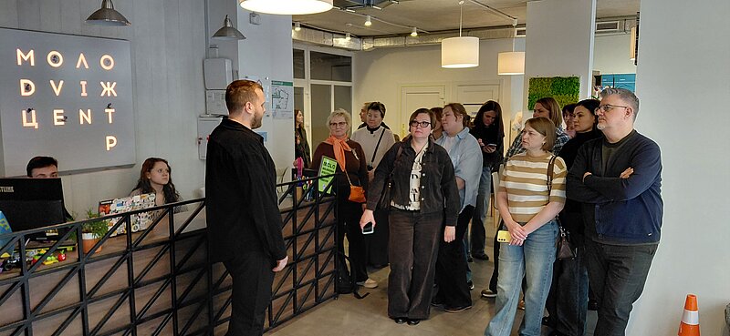 The second day focused on social support and inclusion. The delegation visited the UNBROKEN rehabilitation center, where they learned about approaches to the recovery of people affected by the war. They also visited a library for the visually impaired and a social café that supports the local community.