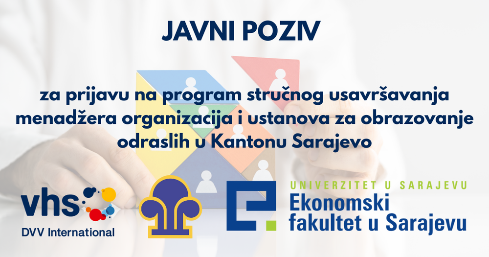 DVV International – Country Office Bosnia and Herzegovina, in cooperation with the Sarajevo Canton Chamber of Commerce and the Faculty of Economics – University of Sarajevo, invites managers of accredited adult education institutions and organizations in Sarajevo Canton to apply for the Professional Development Program for Managers.