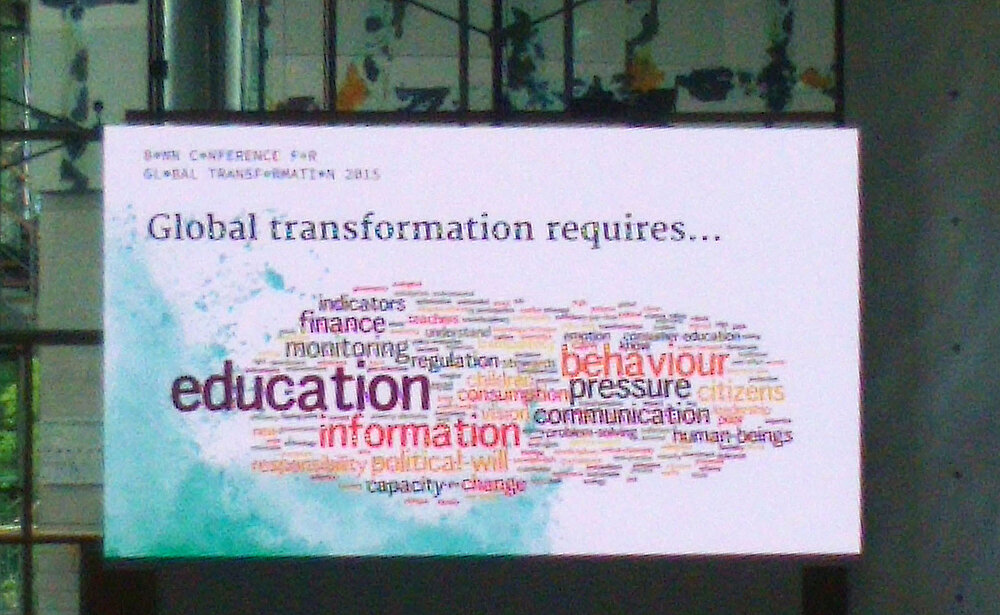 Eine Woche vor der UN-Weltbildungskonferenz, dem „World Education Forum“ in Incheon, Südkorea, fand am 12. und 13. Mai in Bonn die internationale Konferenz "Bonn Conference For Global Transformation 2015 - From Politics to Implementation" statt. Die 700 Teilnehmenden, darunter auch Vertreter von DVV International, unterstrichen dabei die Bedeutung von Bildung als zentralem Instrument zum Aufbau einer nachhaltigen, inklusiven Gesellschaft und für den nötigen Umbau des globalen Wirtschaftssystems.