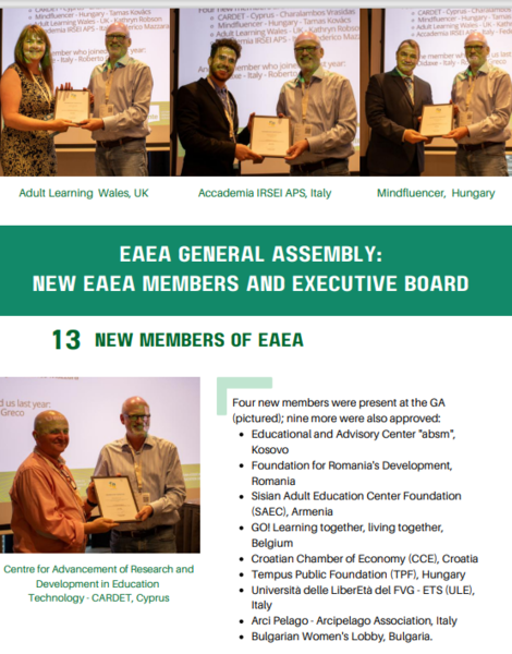 EAEA membership is an opportunity to become part of a European wide network of adult educators. An organization eligible to membership shall be any institution or association, having legal personality and legally set-up according to the laws and customs of their country of origin, pursuing a non-profit goal by primarily working in the field of adult education, and having its administrative seat and operational sphere in a European country. The number of members of the EAEA is not limited.