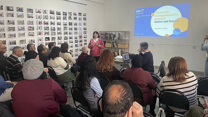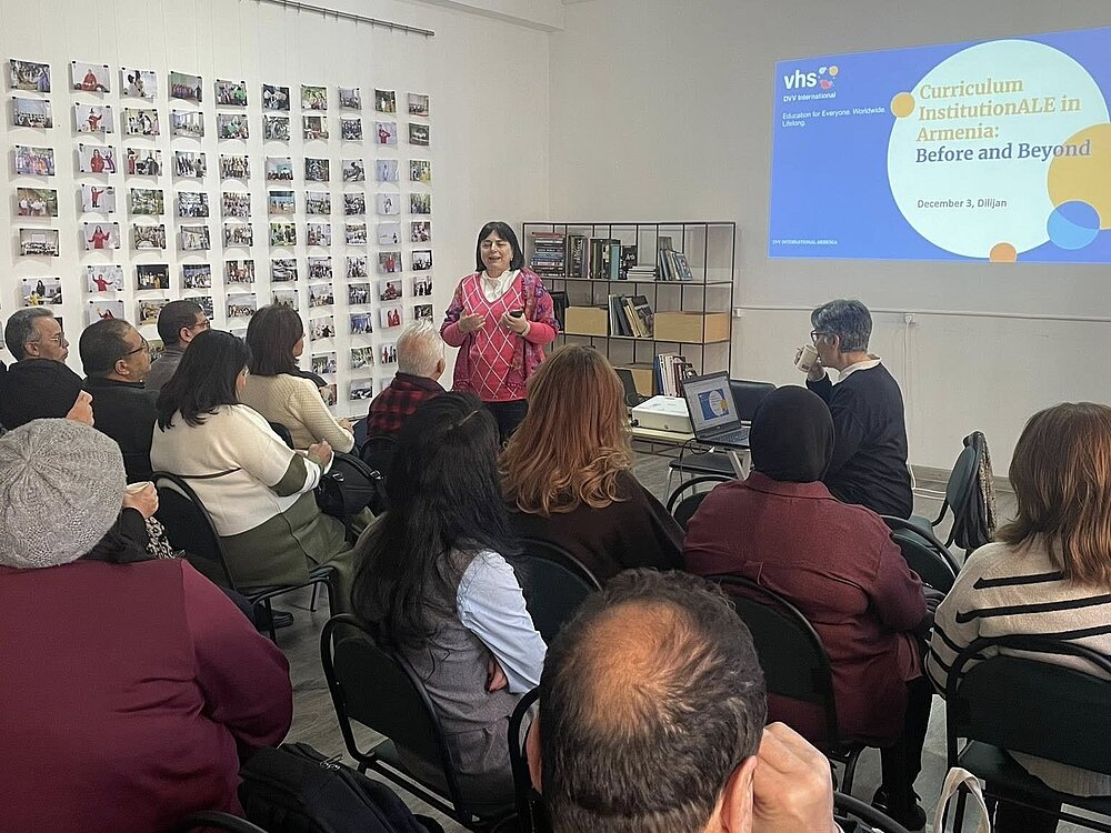 The delegation, consisting of 18 members, had meetings with representatives of the Ministry of Education, Science, Culture and Sports of the Republic of Armenia, private sector partners, as well as Adult Learning and Education (ALE) centers and other ALE Network members. The guests had a chance to visitthe Dilijan and Aparan ALE centers supported by DVV International, where they became familiar with the centers’ activities and key areas of work.Within the framework of the intensive five-day program, discussions were held focusing on adult learning and education policies in Armenia, the implementation of ALE programs, the institutional development of ALE centers, and the establishment of cooperation with local governments.