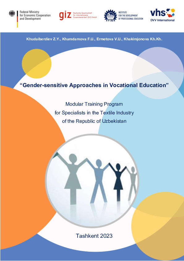 The training program was prepared with the financial support of the German Federal Ministry for Economic Cooperation and Development (BMZ) within the framework of the project “Expanding Educational Offers and Improving their Quality in VET Institutions and the Advanced Training System in the Textile Sector” implemented by DVV International, the Institute for International Cooperation of the German Adult Education Association in Uzbekistan, in co-operation with the Institute for the Development of Professional Education. The project is part of a larger project “Support of the reform and modernization process in the vocational education system of Uzbekistan” and is implemented jointly with Deutsche Gesellschaft für Internationale Zusammenarbeit (GIZ) GmbH.